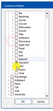 In CabMaster you can customise the Palette to suit your designing needs. Setting up the Palette with standard offerings makes it much quicker to complete regular drawings.
