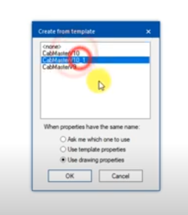 2. You will then see a window showing options for Templates. Select your version and make sure the "Use drawing properties" is checked